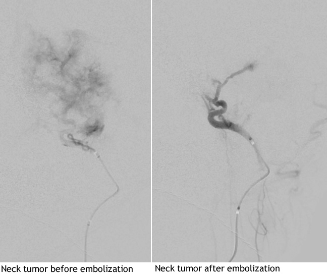 The list of tumors amenable to this therapy is very broad and includes meningiomas, glomus tumors, paragangliomas, nasopharyngeal angiofibromas, as well as metastatic cancerous tumors from the lung, breast, kidney, skin, and bowel.